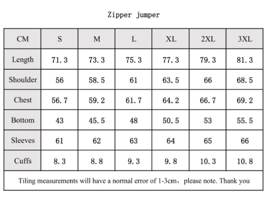 Unisex sizes: